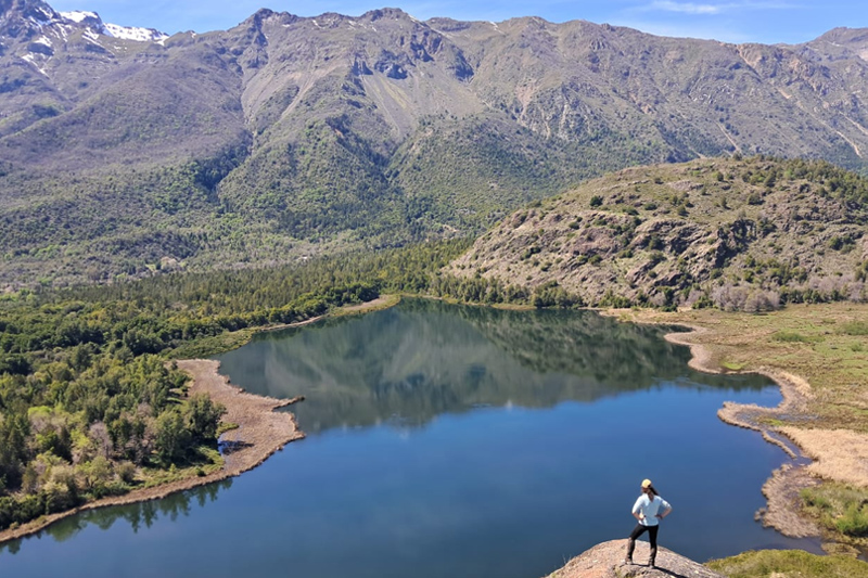 On this excursion, our destination will be a beautiful viewpoint overlooking Laguna Chacayal, one of the most important wetlands in our mountain range, dominated by the highest peaks of San Fabián. To reach it, we'll hike through beautiful native forests with abundant Andean plum trees (Prumnopitys andina) and viewpoints offering stunning vistas of the Nevado de Chillán volcano. At the viewpoint, we'll use binoculars to observe the different species of ducks swimming in the lagoon. Leaving early, we can go down to the lagoon for a swim or use packrafts, or stop to cool off in the Ñuble River on the way back.