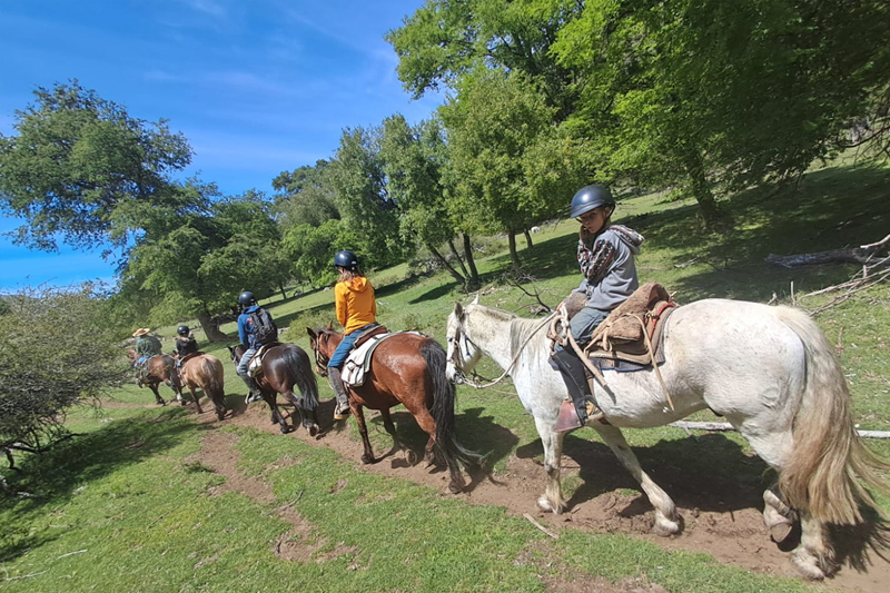 We will meet at the San Fabián police station to travel together by vehicle to the El Caracol sector (30 minutes). After that, we will cross the Ñuble River by small boat, using a traditional river crossing technique in the Andes Mountains. Our horses will be waiting for us on the other side. After introductions and an orientation, we'll mount our horses to begin our adventure, riding through beautiful native forests. Along the trail grow tree species such as raulí (Nothofagus alpina), canelo (Drimys winteri), lleuque (Prumnopitys andina), mañío (Podocarpus salignus), coigüe (Nothofagus dombeyi), arrayán (Luma apiculata), and hazel (Gevuina avellana), among others. In spring and autumn, the pink flowers of the copihue (Lapageria rosea) stand out, intertwined among the foliage of the trees. We might hear the tapping of Magellanic woodpeckers (Campephilus magellanicus) and the calls of chucaos (Scelorchilus rubecula). We'll take a break to stretch our legs and drink water after an hour and a half of horseback riding. Then we'll continue to a viewpoint that will surprise us with its scenic beauty. Before returning by another route, we'll enjoy the spot with a picnic lunch, relax, and admire the landscape: the lake, the Colorado and Pila hills, and the ducks swimming in the lagoon. For the more adventurous, we can arrange to bring packrafts (inflatable kayaks) to paddle on the lagoon.